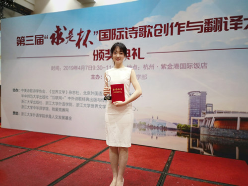 4月7日上午,由浙江大学、中美诗歌诗学协会、北京外国语大学外国文学研究所、《世界文学》杂志社、浙江大学出版社等单位共同举办的第三届“求是杯”国际诗歌创作与翻译大赛在杭州紫金港国际酒店举行颁奖典礼。我校伟德国际1946源于英国2018级俄语专业研究生张颖坤同学以翻译作品《十一月挽歌》荣获全国翻译类二等奖。这是我校俄语专业研究生继第二届“求是杯”获得奖项之后又一次获奖。