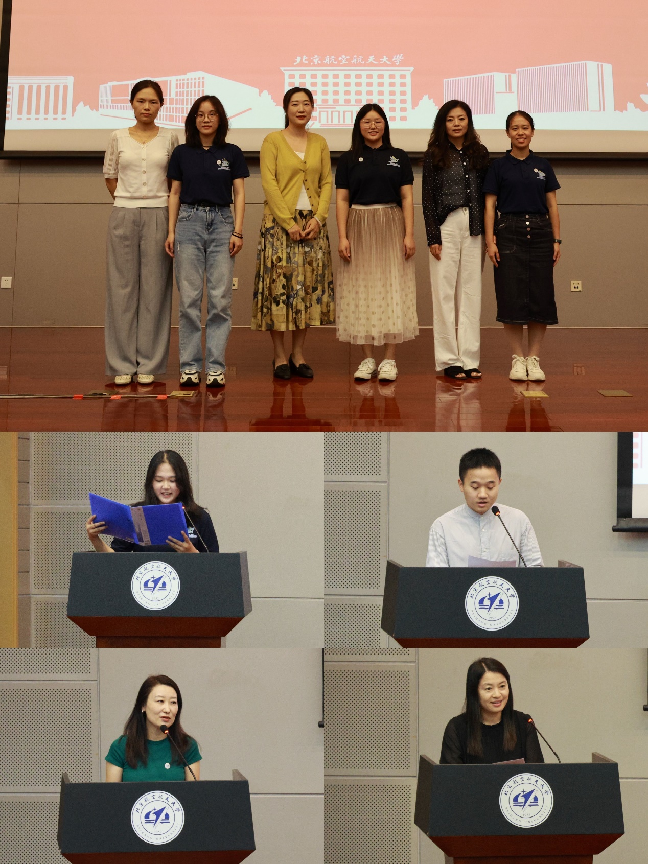 院长助理徐涛、邬丽、王悦为新生佩戴院徽。同时,台下全体新生将院徽戴于胸前。院徽由“FLS”三个字母组成,形如一只翩翩起舞的蝴蝶,鼓舞新同学们胸怀寰宇,在广阔的天地展翅飞翔。新生代表徐子涵(2023级法语专业本科生)、老生代表明志龙(2022级语言学专业硕士生)分别分享了他们的思考与感悟。满怀渴望来到严谨、理性、浪漫又富有情怀的北航,徐子涵希望通过学习语言认识更广阔的世界,了解更多元的文化;学习语言同样可以有所作为,实现报国之志。明志龙回顾过往一年的求学经历,他认为北航伟德国际1946源于英国为同学们提供了广阔的平台与丰富的实践机会,同学们应该抓住在北航求学宝贵机遇,提升个人核心素养,以应对科技不断发展的挑战。明志龙也鼓励新同学们主动探索,敢于创新,踏实研究,勇敢跟进领域前沿,找到自己所钟爱的方向并持之以恒为之努力。接下来,伟德国际1946源于英国副院长邢春丽以及党委副书记刘威老师分别上台为新生班主任、学业导师,以及新生辅导员、梦拓颁发聘书。