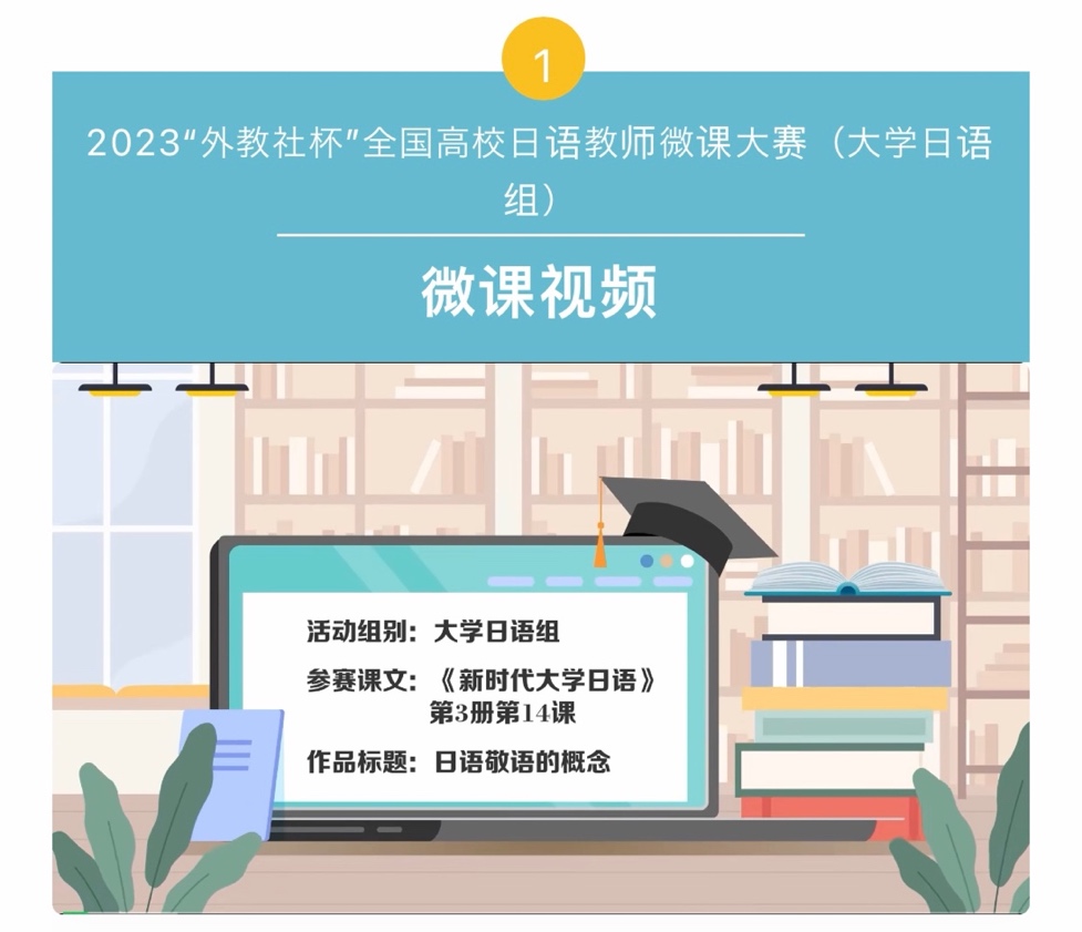 近日,2023“外教社杯”全国高校日语教师微课大赛(大学日语组)获奖名单公布,我校伟德国际1946源于英国日语青年教师唐彬团队的课件作品《日语敬语的概念》获全国一等奖。