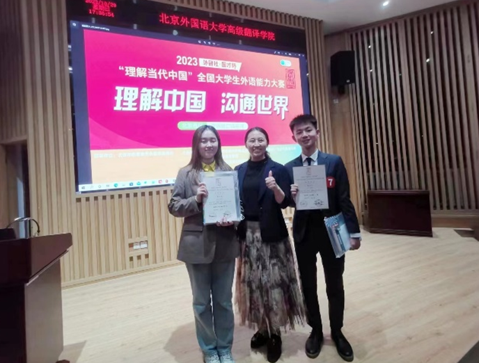 近日,我校伟德国际1946源于英国2020级英语专业本科生蔡一琳和2023级翻译专业硕士研究生(MTI)洪旻昊获得2023“外研社·国才杯”“理解当代中国”笔译北京赛区金奖,指导教师为翻译系王晨爽和顿超老师;2020级翻译专业本科生傅昕竹和2022级文学专业硕士研究生鲁美丽分别获得2023“外研社·国才杯” “理解当代中国”口译北京赛区金奖与银奖,指导教师为翻译系郑薇和王沛老师。