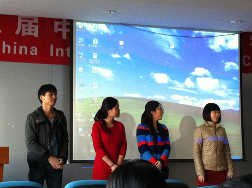 在第一个环节中,外院10级的前任大班长杨凯聿对上一学年的大班工作进行了总结,回顾了一年以来重要的活动内容,并凭借其经验为新一届大班委提出了些许建议与希望。随后新一届大班委——班长季晶晶、团支书蒋明彤、学习兼文宣体委员孔小龙和生活委员宋茁——也分别发表了就职演说。在第二个环节中,同学们欣赏了由10级全体保研的同学精心制作的视频资料,此视频录制了任科老师对10级将要出国、考研或就业的学生的衷心的鼓励和亲切的祝福,在播放视频的同时,每位同学还都得到了一张写满祝福的贺卡,老师的精彩讲话与礼物不仅给同学们带来了欢乐,更带来了信心与温暖。在最后一个环节中,学院特别邀请了北航优秀校友——从剑桥大学土地经济学硕士毕业回国工作的刘佩东学长,给同学们详细地讲述了申请出国留学的每一个步骤,为准备出国的学生再次理清了思路,并指明了方向。