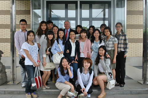由中国青年报与德国驻华大使馆共同举办的“与世界对话——对话德国驻华大使”活动在2013年5月7日下午于德国驻华大使馆会客厅如期进行。来自北京航空航天大学德语系的16名大二学生和2名大四学生均参与了此次活动。